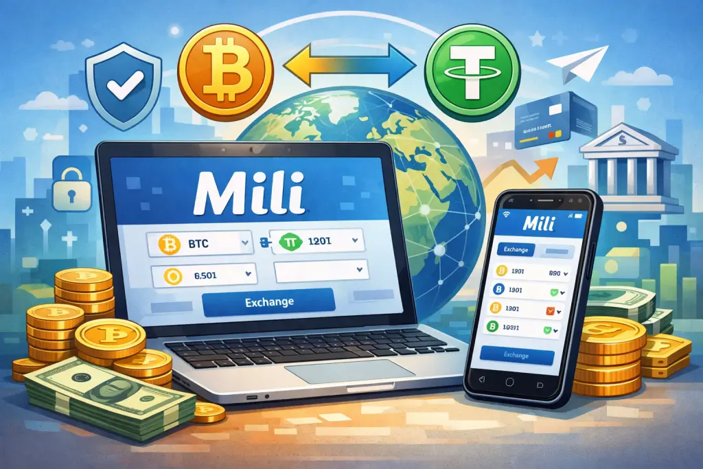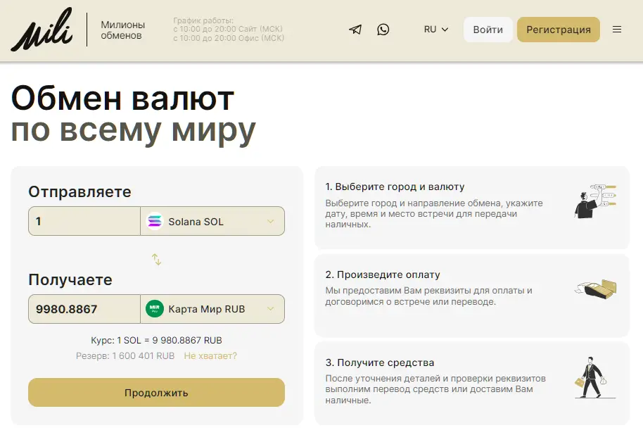 Mili — это онлайн-ресурс для обмена валют, криптовалют и электронных платежей, где основной акцент сделан на безналичные направления. Среди главных сторон обменника: